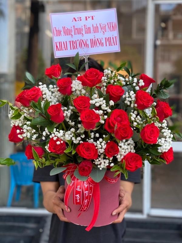 XT HKT 206 – Hộp Hoa Khai Trương Hồng Đỏ